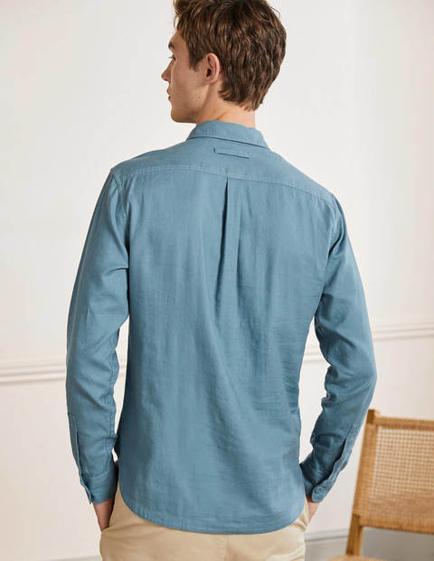 Linen Cotton Popover Shirt Aegean Blue Herringbone Boden Uk